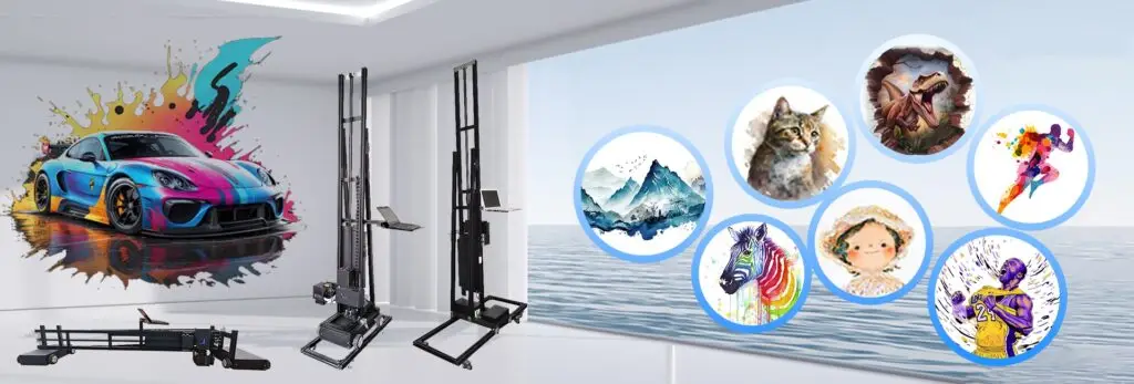 Wall printer⁺ focuses exclusively on plug-and-play solutions requiring minimal setup time—targeted at mobile artists offering door-to-door services.